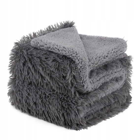 Koc Dwustronny Dla Dużego Psa 160x100 cm włochaty shaggy + baranek szary