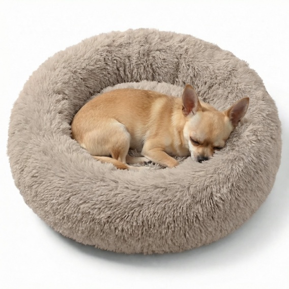 Okrągłe Włochate Legowisko Chmurka 40 cm Dla Psa i Kota - Beżowy