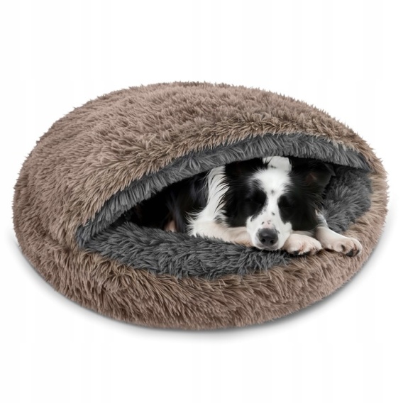 Okrągłe legowisko Śpiwór Dla Psa Włochate Bezpieczne Antystresowe 80 cm