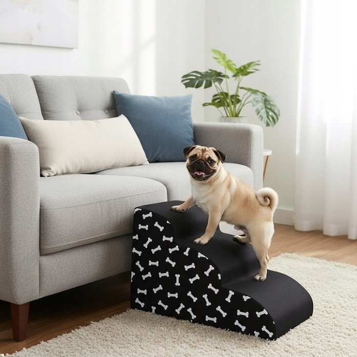 Zadbaj o wygodę swojego małego psa! Trzystopniowe schodki dla psa DOGGURU to idealne rozwiązanie dla psów średnich ras, które mają trudności z wchodzeniem na wyższe miejsca, takie jak kanapa czy łóżko. Dzięki subtelnym, zaokrąglonym krawędziom i stabilnej konstrukcji, te schodki staną się niezbędnym elementem codziennego życia Twojego pupila.