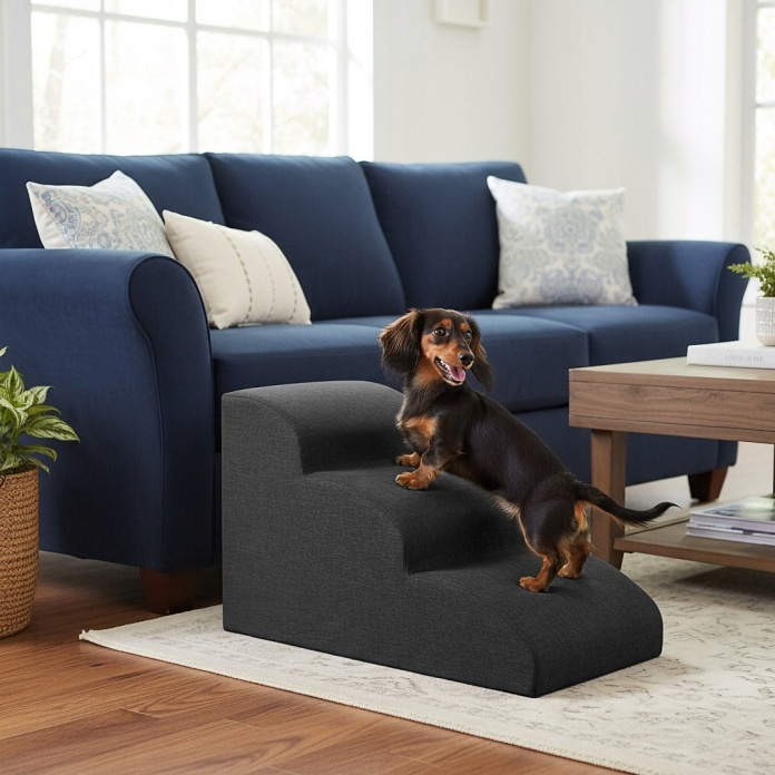 ➡️ Bezpieczeństwo: Dzięki stabilnej konstrukcji i antypoślizgowemu spodowi, schodki zapewniają Twojemu psu bezpieczne wchodzenie na wyższe powierzchnie.