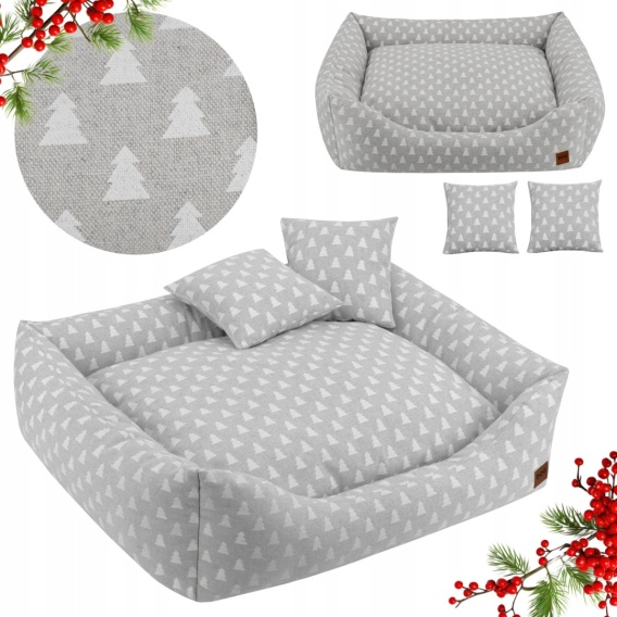Świąteczne Legowisko Dla Psa Kota 70x60 cm Choinki Na Lnie + 2 Poduszki