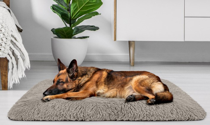 W miejscach, gdzie podłoga jest szczególnie zimna (płytki, drewno), warto położyć matę termoizolacyjną lub lekką matę grzewczą. Nie tylko chroni przed chłodem, ale także wspiera stawy starszych pupili.
