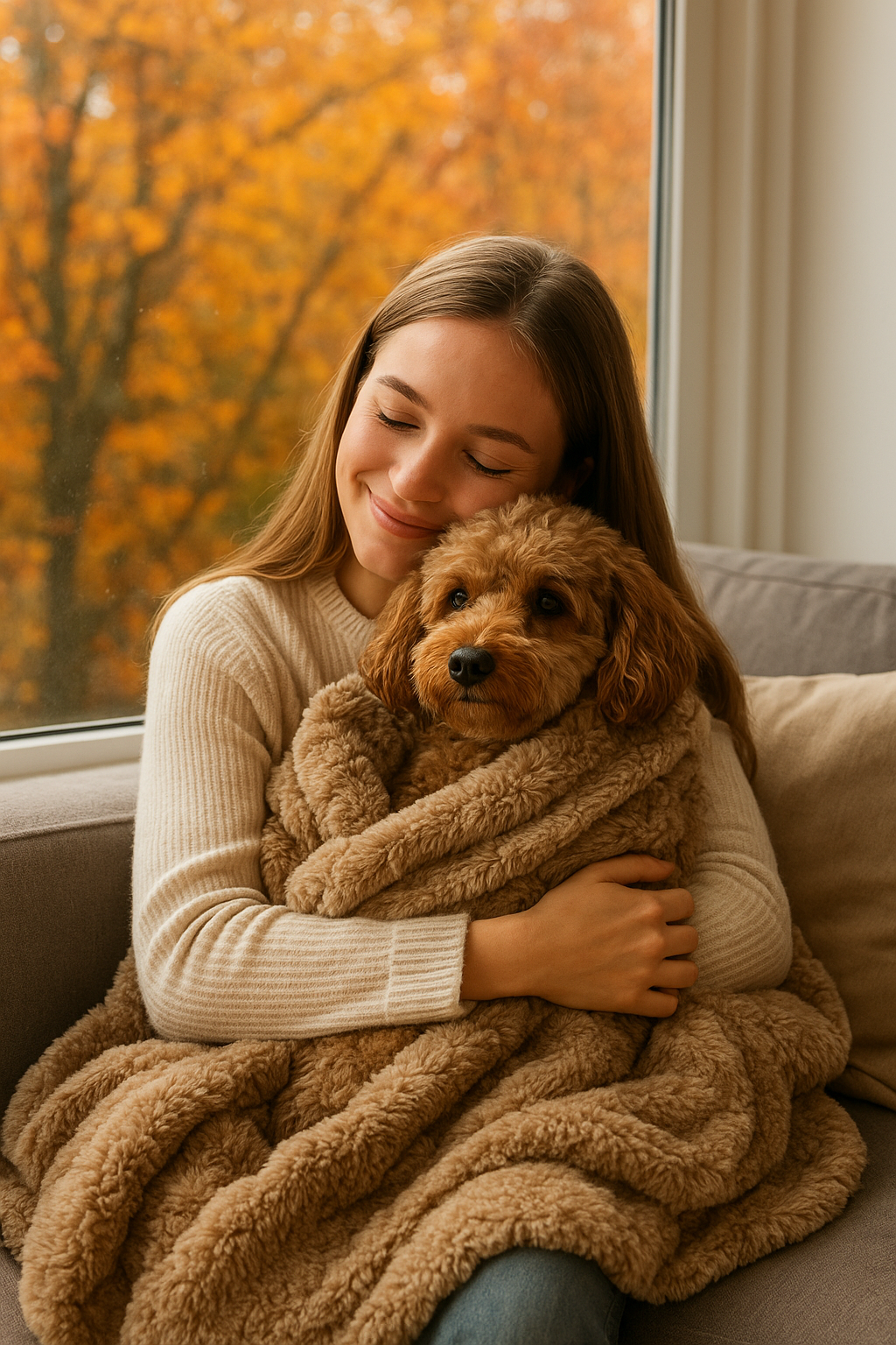Przytulna atmosfera – nic nie tworzy jesiennego klimatu bardziej niż widok pupila wtulonego w miękki kocyk w swoim własnym kąciku.